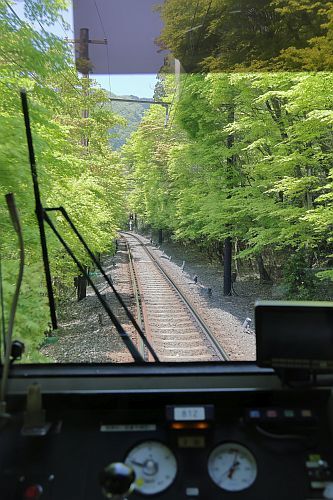 市原~二ノ瀬の「青モミジ」のトンネルでは徐行運転 山笑う・・・山の緑が目に眩しい新緑の季節です。 快晴だった4月30日、どこに撮影に行こうか少し迷ったのですが、近場の山岳路線ということで18年振りに叡山電鉄の撮影に行ってきました。 叡電も市原を出ると…