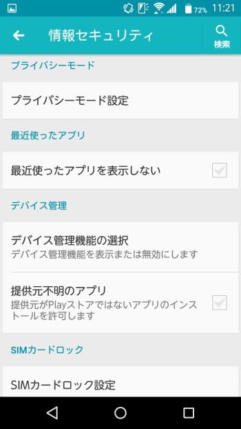 この程度具体的な内容になると、ネット上での情報入手もやりやすくなり、「・・・開発者サービス アップデートのアンインストール グレーアウト」で検索すると、いくつもヒントが見つかります。 それに従って「ロック・セキュリティ」>「情報セキュリティ」>「デバイス管理機能の選択」と進み、チエックマークの入っている項目を外します。 再びアプリの管理画面で「Google Play開発者サービス」を選択すると、「アップデートのアンインストール」ボタンが表示されるようになりました。 先ずはメデタシメデタシです。